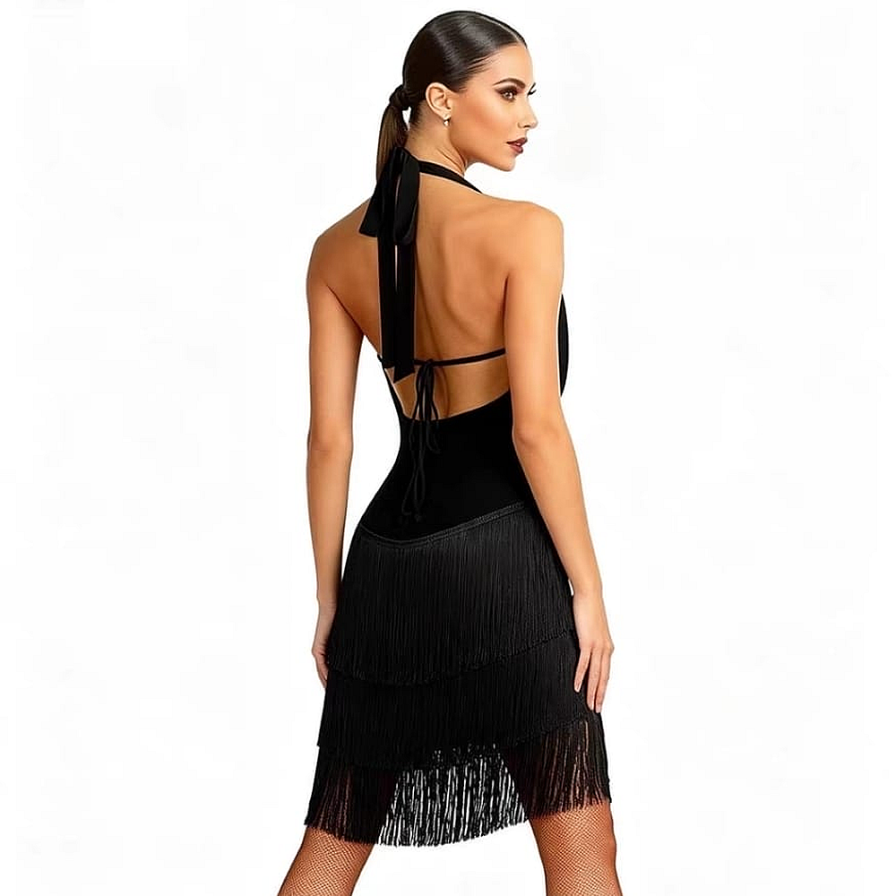 Layered Tassle Halter Neck Short Dress