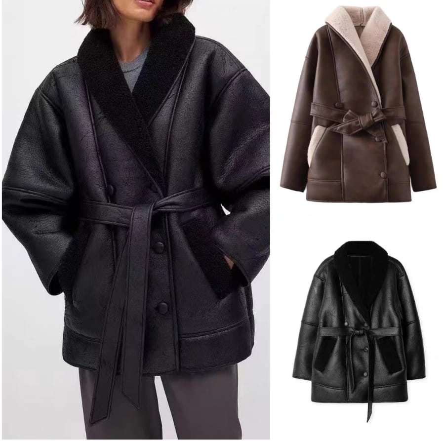 Introducing the Norion Luxury Belted Faux Shearling Jacket. This mid-length, loose-fit jacket is expertly crafted with a durable PU faux leather exterior and fully lined with thick, soft faux shearling. The wide shawl lapel adds a touch of dramatic elegance, while the adjustable tie-belt allows you to cinch the waist for a flattering, personalized fit.