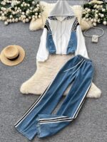 Be the first to review “Stylish and contemporary two-piece outfit featuring a distinctive half-and-half design of fabric and denim.”