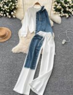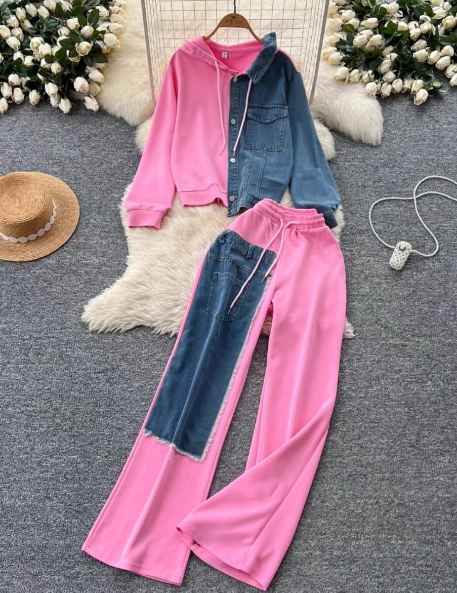 This Denim/Fabric Two-Piece Co-ord in Black/Grey/Pink is the definitive answer. The striking combination of dark fabric and light blue denim creates a high-contrast, high-fashion look that remains highly wearable. The comfortable fit and cohesive design ensure effortless styling, making the highly persuasive price of just £30 for this complete, unique set feel absolutely essential.
